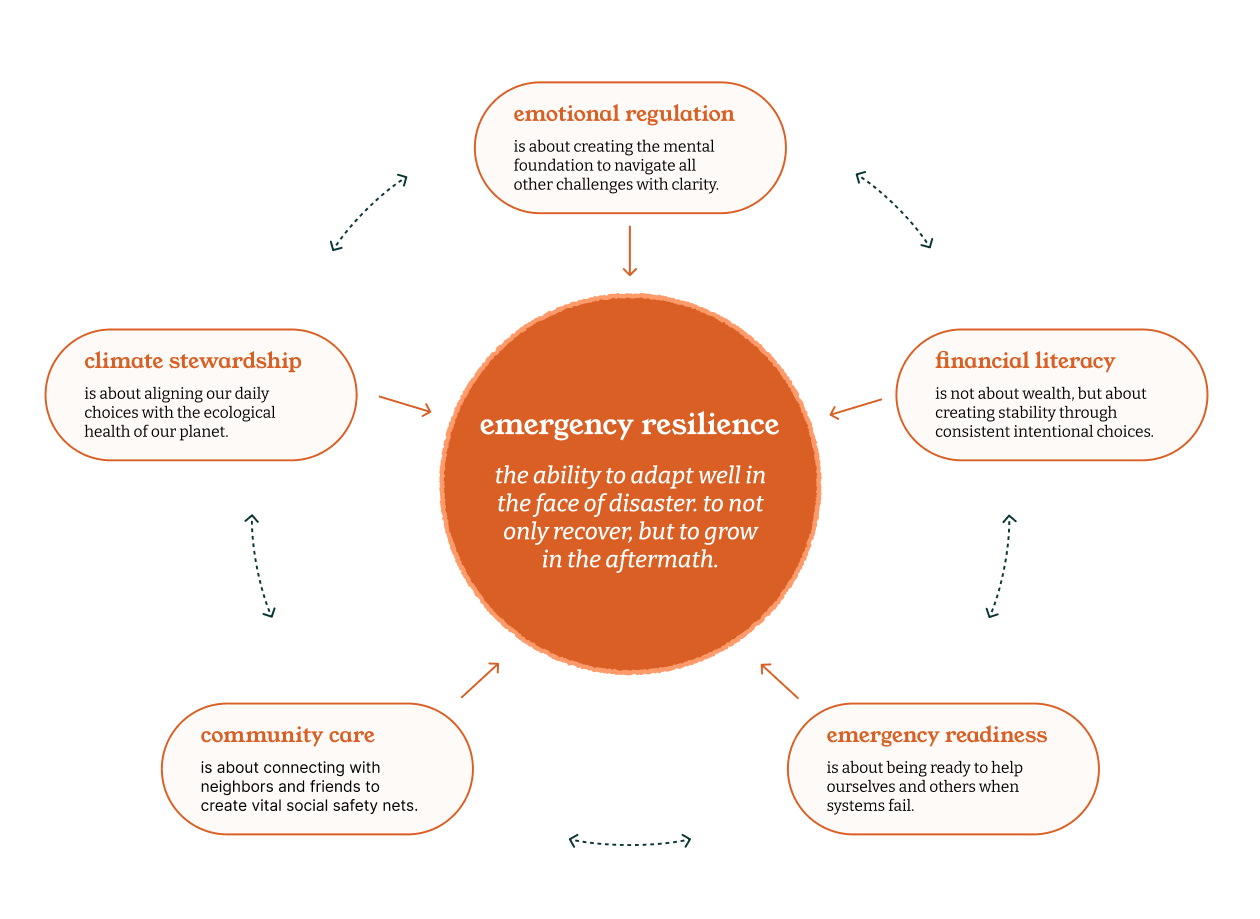 When we build community gardens, we're practicing environmental and community resilience simultaneously. When we teach our children emergency preparedness, we're building both practical skills and emotional resilience. When we create neighborhood support networks, we strengthen our financial and emergency resilience together.
